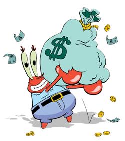Mr. Krabs: É o patrão do spongebob e é viciado em dinheiro, um autentico forreta . Tem uma filha que é uma baleia, chamada Purle. o seu maior inimigo é Plankton que lhe está sempre a tentar roubar a recita secreta do hâmburguer soculento.