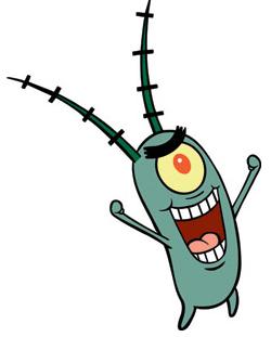 Plankton: É o maior inimigo do senhor Krabs pois está sempre a tentar-lhe roubar a receita do hambúrguer soculento, mas sempre sem sucesso. Tem 20 cm de altura e tem apenas 1 olho.